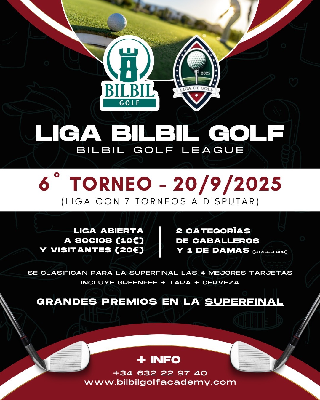 📣 ¡¡ESTE SÁBADO 20/9!! ⚠ ⏰ Salida al tiro a las 9:00h 🏌️‍♂️ ¡Llega el 6.º Torneo de la Liga BilBil Golf! 📅 20 de septiembre de 2025 Solo queda 1 torneo más antes de la gran Superfinal 🔥 ⛳ Liga con 7 torneos en total – ¡aún estás a tiempo de clasificarte! 🟢 Abierta […]